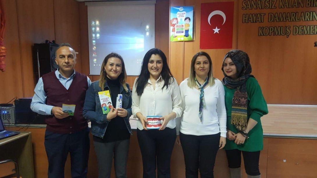 Bilimsel diş hekimliği eğitiminin 22 Kasım 1908'de başlaması nedeniyle ülkemizde her yıl 22 Kasım günü Diş Hekimleri Günü, 22 Kasımı içine alan hafta Ağız ve Diş Sağlığı haftası olarak kutlanmaktadır. Sağlık, bireyin fiziksel, zihinsel ve sosyal açıdan tam bir iyilik halidir. Bireylerin fiziksel sağlığı ise vücuttaki tüm organ ve dokuların sağlıklı olması ile mümkündür. Bu nedenledir ki ağız ve diş sağlığını bozan faktörler bireyin vücut sağlığını da doğrudan etkilemekte, diş çürükleri ile dişeti hastalıkları; kalp-damar hastalıkları, yüksek tansiyon, kemik erimesi, şeker hastalığı, mide rahatsızlığı gibi pek çok hastalığa neden olamktadır. Toplumumuzu ağız ve diş sağlığı konusunda bilinçlendirmek için eğitim şarttır. Eğitime özellikle küçük yaşlarda başlanmalı, ağız ve diş bakımını alışkanlık haline getirmelidir. Bu konuda öğretmenlerimize, anne ve babalara ve sağlık kuruluşlarına önemli görevler düşmektedir.Bu kapsamda bugün Prof. Dr. Erol Güngör İlkokulunda 3. sınıf öğrencilerine Ağız diş sağlığı eğitimi verildi, öğrencilerimize İl Sağlık Müdürülüğünün göndermiş olduğu diş macunu ve diş fırçalarını dağıtttık .İl Sağlık Müdürülüğüne ve Diş Hekimi Ebru AYDEMİR KILIÇASLAN' a destekleri için teşekkür ederiz.